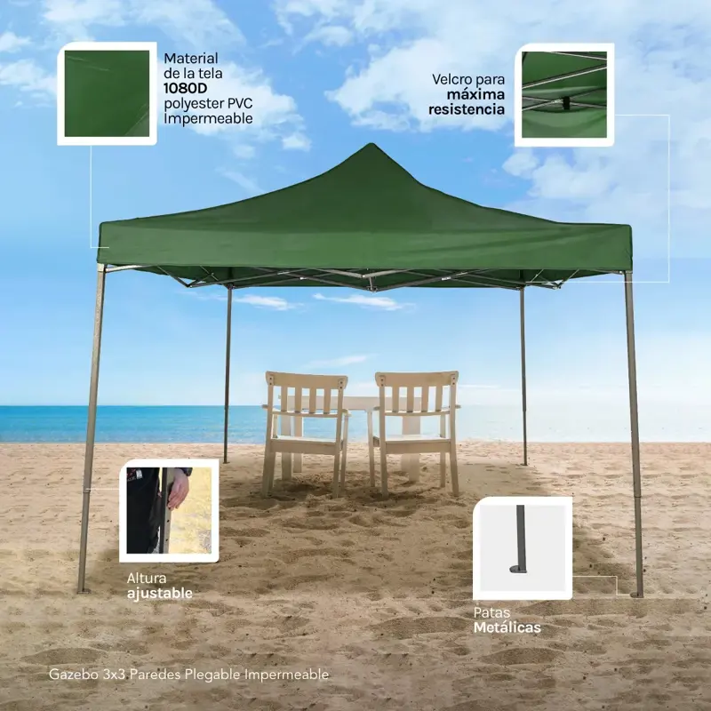 Este gazebo está diseñado para ofrecer una protección confiable gracias a su tela Oxford 1080D, reconocida por ser a prueba de agua. Este gazebo te ofrece un espacio amplio y cómodo para disfrutar al máximo.