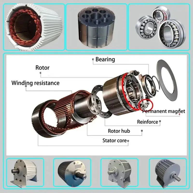 Modelo L con potencia nominal de 10KW o 20KW. Velocidad nominal de 300 rpm. Voltaje nominal entre 48V y 380V. Ideal para aplicaciones industriales que requieran alta potencia y rendimiento constante.Imágenes ilustrativas disponibles para visualización del producto.