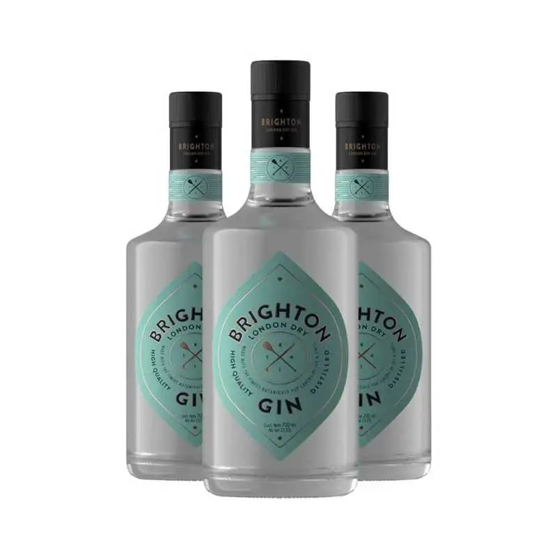 Incluye: 3 Botellas de Gin Brighton 700 ml Marca: Brighton Nivel de Alcohol: 40% ABV Tipo de Licor: Gin Tipo de Elaboracion: Destilado con botanicos y notas citricas Maridaje: Excelente en cocteles clasicos como el Gin Tonic o el Negroni Las imagenes mostradas son solo ilustrativas. El diseño de la etiqueta y/o cosecha pueden variar respecto a lo mostrado.