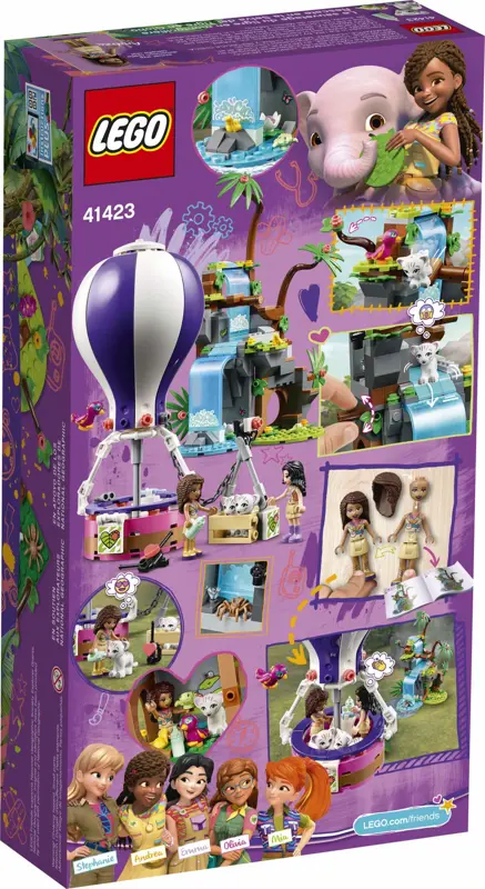 - Los niños pueden inventar emocionantes historias de la selva con la ayuda de un juguete de globo de aire caliente, figuras de LEGO Friends Emma y Andrea para construir, 2 juguetes de tigre bebé, además de una serie de otras lindas figuras de animales