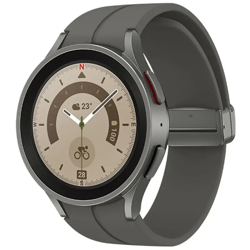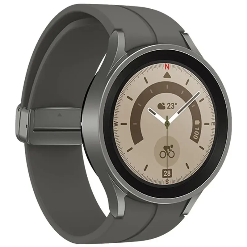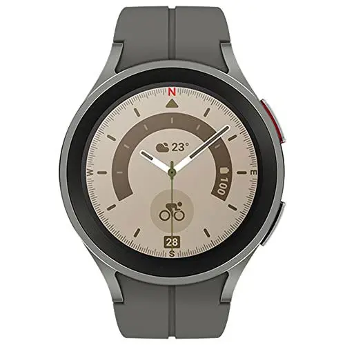 Emprende tu aventura definitiva con el Galaxy Watch5 Pro. Es nuestro reloj para exteriores más avanzado hasta la fecha, con una pantalla de cristal de zafiro dos veces más potente. Disfruta de actividades intensas, incluso con el GPS encendido, gracias a una batería de larga duración. Mantente en el camino correcto incluso en terrenos desconocidos gracias a la navegación paso a paso guiada por voz o vibración. Lleva tu cuerpo más lejos con sensores precisos que te ayudan a controlar más de cerca tu frecuencia cardíaca y con las mediciones del BIA que te ayudan a controlar tu estado físico. Consigue el descanso que necesitas para mantenerte con energía en tus viajes con Advanced Sleep Coaching. Luce elegante en cada expedición con correas y esferas de reloj que puedes combinar con cualquier atuendo. Además, combina tu reloj con el resto de tu Galaxy para conectar una red de dispositivos que funcionan en conjunto para ayudarte a jugar con más fuerza y resistencia que nunca. Ya sea que estés haciendo senderismo, haciendo kayak o acampando, prepárate para llevarlo al extremo con el Galaxy Watch5 Pro.