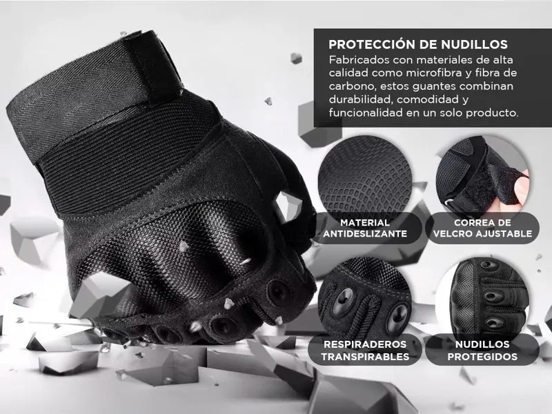 Equipados con refuerzos en áreas clave, cierre ajustable y compatibilidad con pantallas táctiles, nuestros guantes están diseñados para enfrentar cualquier desafío que se presente. Ya sea que estés explorando nuevos terrenos, entrenando al aire libre o buscando protección adicional, estos guantes son tu compañero perfecto para todas tus aventuras.
