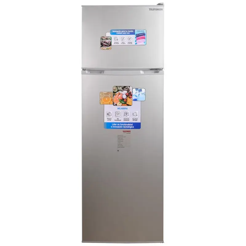 Heladera con freezer 296L PLATA TELEFUNKEN- Capacidad bruta: 300 litros- Refrigerante: R600A- Eficiencia A- Descongelado manual- Condensador interno- Luz interior- Estantes de vidrio- Caj¦nn para verduras- Regulador de temperatura- Color PLATA- Tama¦±o: L 575mm ; P 560mm ; A 1740mm- Peso: 40 kg- Modelo TFK-HD300- Garantia: 12 meses- Origen: China