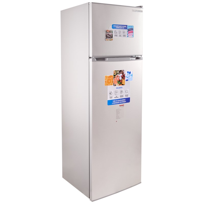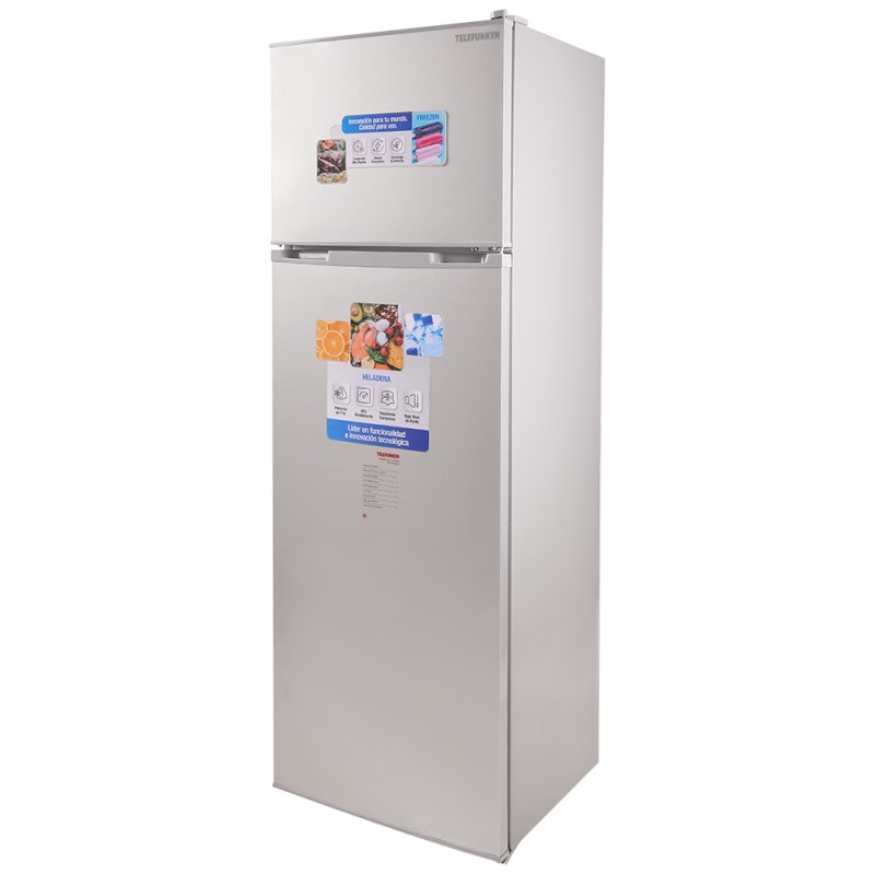 Heladera con freezer 296L PLATA TELEFUNKEN- Capacidad bruta: 300 litros- Refrigerante: R600A- Eficiencia A- Descongelado manual- Condensador interno- Luz interior- Estantes de vidrio- Cajón para verduras- Regulador de temperatura- Color PLATA- Tamaño: L 575mm ; P 560mm ; A 1740mm- Peso: 40 kg- Modelo TFK-HD300- Garantia: 12 meses- Origen: China