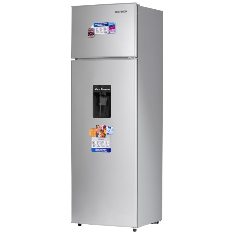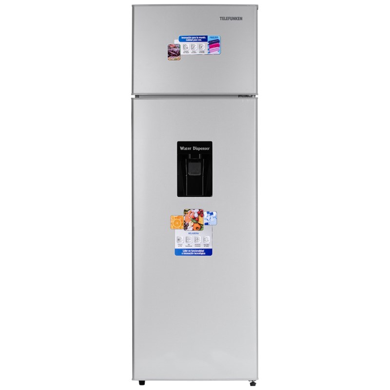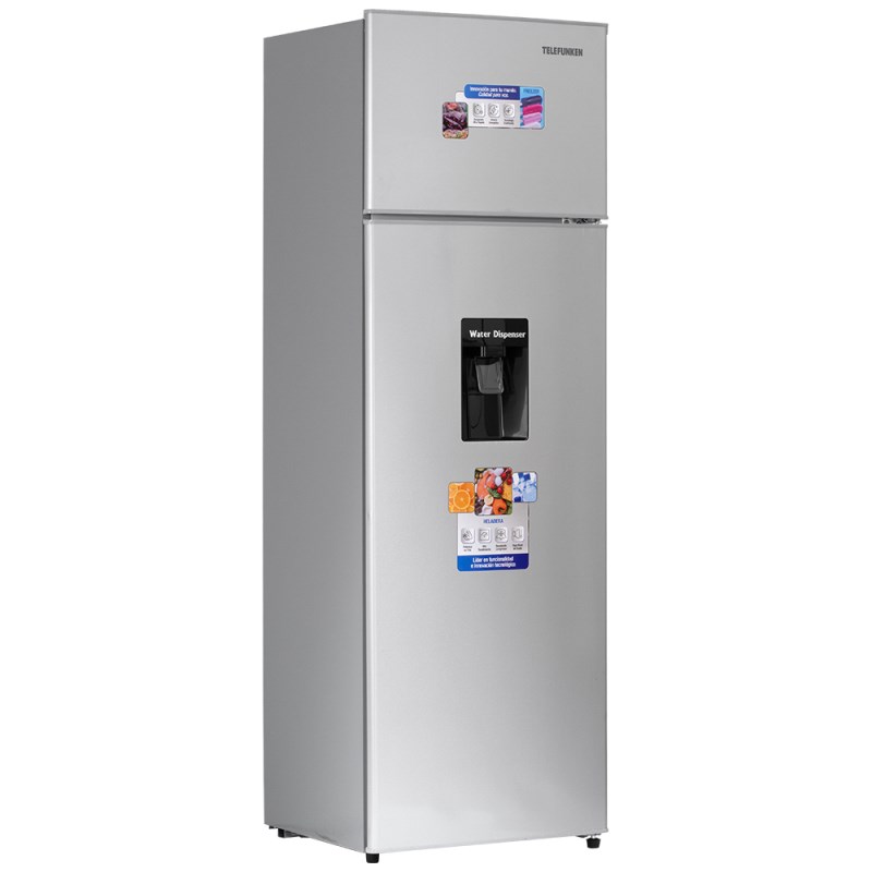 Heladera con freezer 296L PLATA CON DISPENSER TELEFUNKEN- Capacidad bruta: 300 litros- Refrigerante: R600A- Eficiencia A- Descongelado manual- Condensador interno- Luz interior- Estantes de vidrio- Cajón para verduras- Regulador de temperatura- Color PLATA- Tamaño: L 575mm ; P 560mm ; A 1740mm- Peso: 40 kg- Modelo TFK-HD300D- Garantia: 12 meses- Origen: China