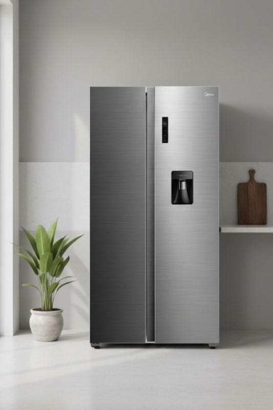HEL 470L MDRS710FGE46ADW SBS NF IX EEA+ MIDEA- SIDE BY SIDE- Volumen neto 510L- Volumen refrigerador 345L- Volumen freezer 165L- Eficiencia Energética A+- Color INOX- Compresor Inverter- Dispenser- Control Electrónico- Iluminación LED- Gas refrigerante R600- Cantidad refr (g) 74- Potencia Descongelado 220 W- Corriente nominal 1.55- Capac Cong Kg/24h 10- Ruido dB (A) re 1PW 40- Clase Climática T- Medidas Unidad (ancho*profundidad*alto) 897*706*1765 mm- Medidas con embalaje (ancho*profundidad*alto)955*778*1855 mm- Peso neto (Kg) 80- Peso Bruto (Kg) 90- Modelo MDRS710FGE46ADW- Garantía 2 años- Origen CHINA
