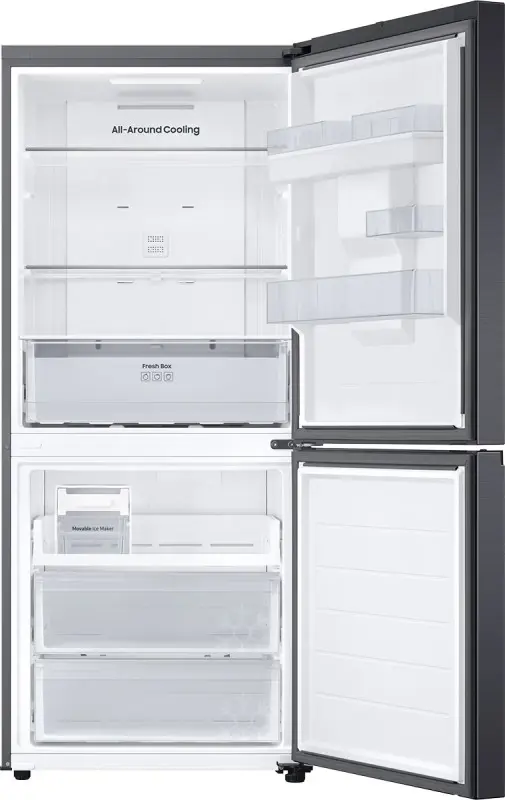 HEL BESPOKE RB45DG6300B1 455L NG SAMSUNG Digital Inverter Compressor Sistema de enfriamiento All Around Cooling No Frost Capacidad bruta 469L Capacidad neta 455L Capacidad neta freezer 168L Movable Ice Maker (Twist Ice) Eficiencia Energetica: B Dimensiones 759 x 1780 x 711 mm Garant¦_a 12 meses Origen Tailandia