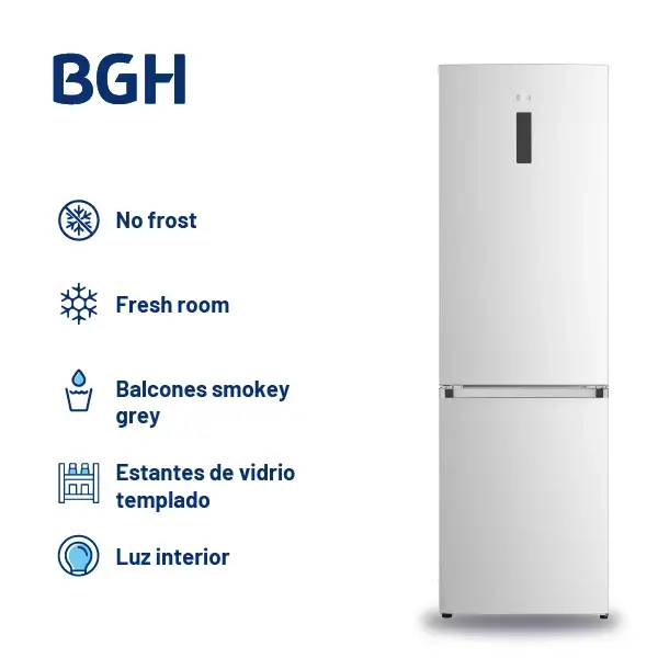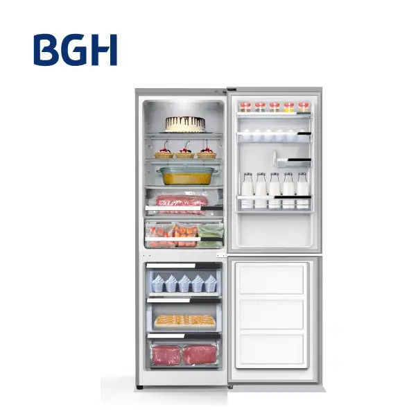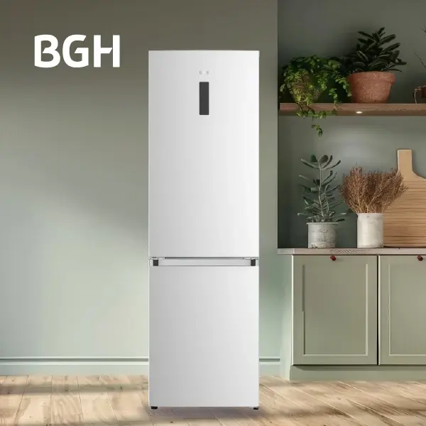 Heladera BGH Combi 312L No Frost Inox BRC310I1A Características principales • Capacidad total de 312 litros • Diseño Combi con freezer inferior • Tecnología No Frost • Eficiencia energética A++ • Compartimiento Chill de 25 L • Color Inox La heladera BGH BRC310I1A está pensada para quienes buscan practicidad y eficiencia en el día a día. Su diseño Combi con freezer inferior mejora la ergonomía y el acceso a los alimentos de uso frecuente. Gracias a la tecnología No Frost, mantiene una temperatura homogénea sin generar escarcha. Su eficiencia energética A++ permite ahorrar consumo eléctrico, mientras que el compartimiento Chill es ideal para conservar carnes y bebidas a la temperatura justa. Detalles técnicos Modelo: BRC310I1A Tipo: Combi Capacidad total: 312 L Dimensiones: 60x65,8x185 cm Nivel de ruido: 39 dB ¡Optimizá tu cocina con la eficiencia y el diseño de BGH!