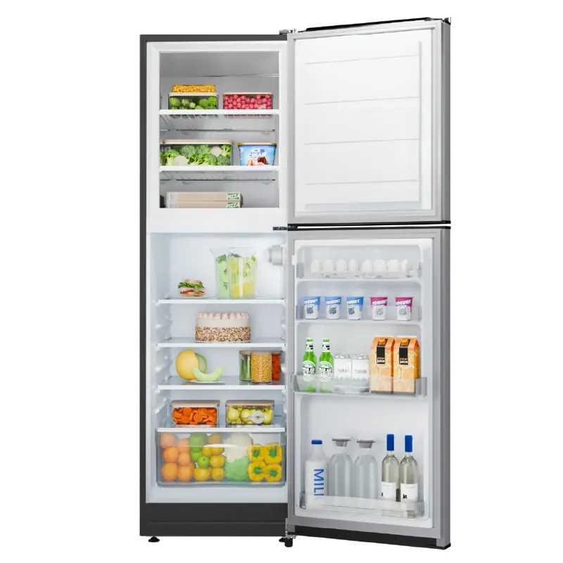 Heladera con freezer cíclica. Eficiencia energética A+. Color gris. Ancho XXS. Freezer XXL. Gas ecológico R600a. Capacidad bruta 314 litros. Capacidad neta 302 litros. Deshielo manual. Su tecnología Cycle Defrost permite mantener la humedad y textura de los alimentos por más tiempo. Sus estantes en refrigerador son de vidrio templado y regulables en altura para una mayor resistencia y versatilidad optimizando el espacio de almacenado. Sus estantes son de alambrón en freezer. Cuenta con anaqueles en contrapuerta para botellas y alimentos regulables en altura. Posee cajón para frutas y verduras. Control de temperatura con perilla interior. Luz interior LED. Cubeteras. Huevera. Apertura de puerta controlada.