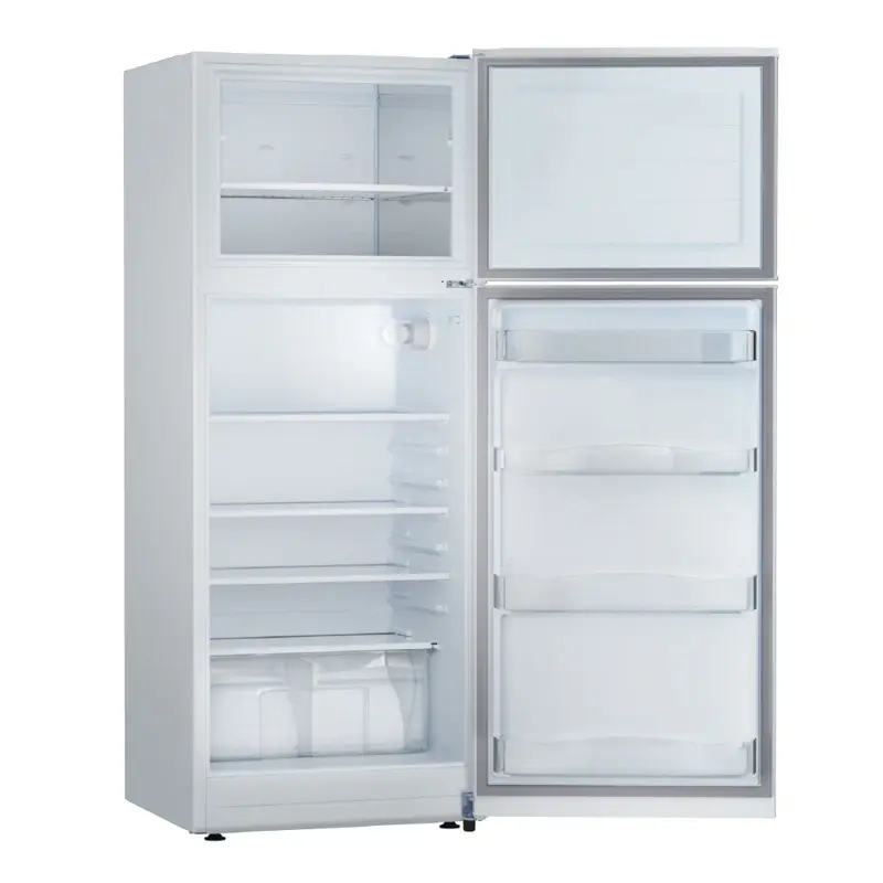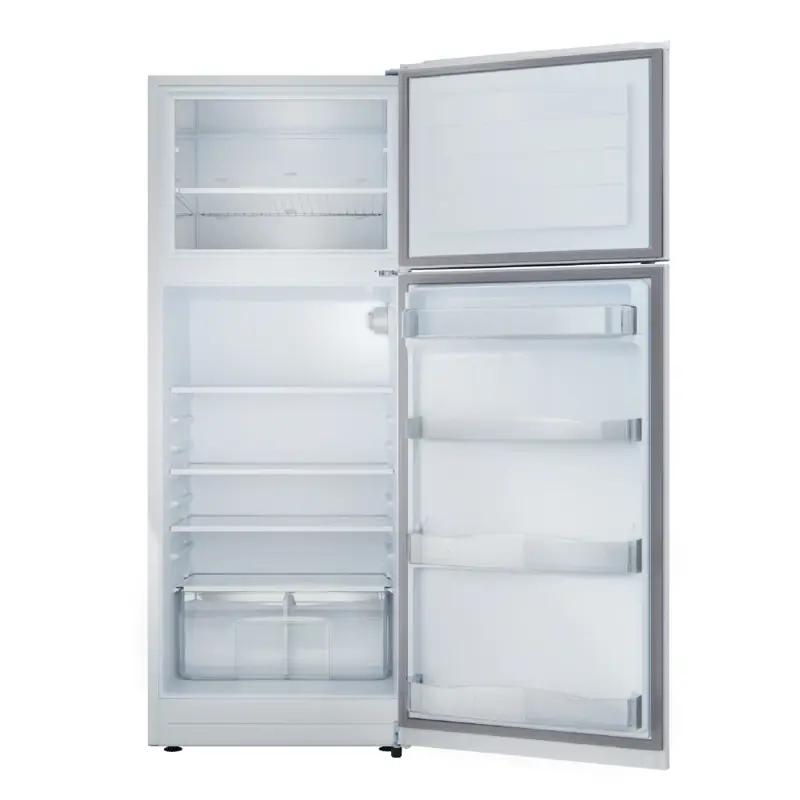 Heladera con freezer cíclica. Eficiencia energética A. Color blanco. Gas ecológico R600a. Capacidad bruta 364 litros. Capacidad neta 363 litros. Deshielo manual. Estantes regulables en altura de vidrio en refrigerador y alambrón en freezer. Anaqueles en contrapuerta para botellas y alimentos regulables en altura. Cajón para frutas y verduras. Cubeteras. Huevera. Apertura de puerta controlada. Control de temperatura con perilla interior. Luz interior LED. Patas regulables y ruedas de transporte. Origen Argentina.