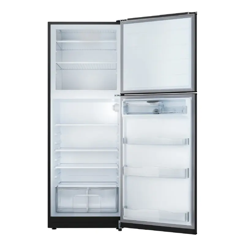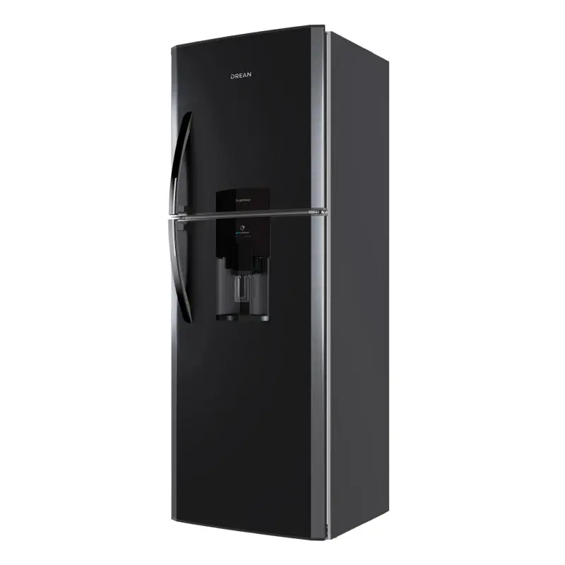 Heladera con freezer cíclica. Eficiencia energética A+. Color black steel. Gas ecológico R600a. Capacidad bruta 396 litros. Capacidad neta 392 litros. Deshielo manual. Dispenser de 2 litros de capacidad. Estantes regulables en altura de vidrio en refrigerador y alambrón en freezer. Anaqueles en contrapuerta para botellas y alimentos regulables en altura. Cajón para frutas y verduras. Cubeteras. Huevera. Apertura de puerta controlada. Control de temperatura con perilla interior. Luz interior LED. Patas regulables y ruedas de transporte. Origen Argentina.