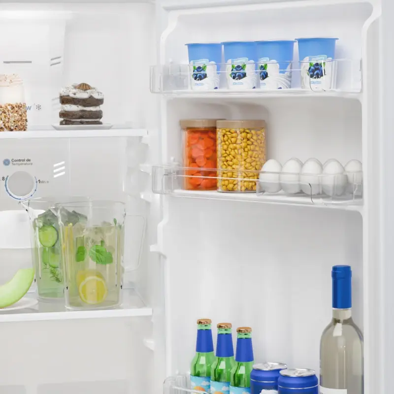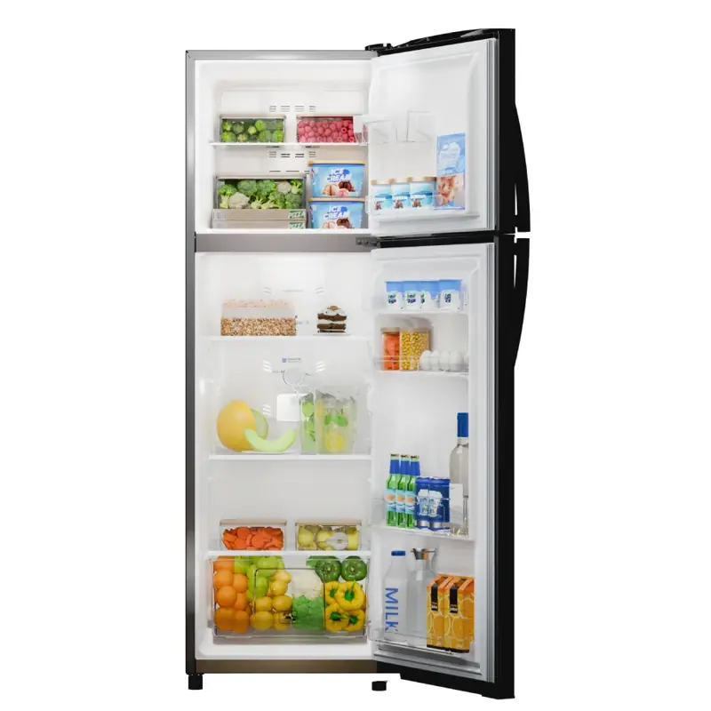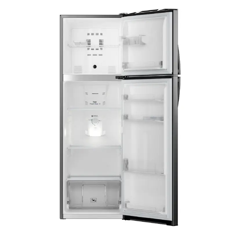 Heladera con freezer No Frost. Eficiencia Energética A. Color Steel. Gas ecológico R600a. Capacidad bruta 250 litros. Capacidad neta 239 litros. Sistema Total Fresh Flow para una mejor distribución del frío. Estantes de vidrio templado en freezer y refrigerador regulables en altura para una mayor resistencia. Anaqueles en contrapuerta para botellas y alimentos en freezer y refrigerador. Cajón XXL para frutas y verduras. Control de temperatura interior en freezer y refrigerador. Apertura de puerta controlada. Luz interior LED. Sistema antihuellas. Tecnología Energy Saver Green. Origen Colombia.