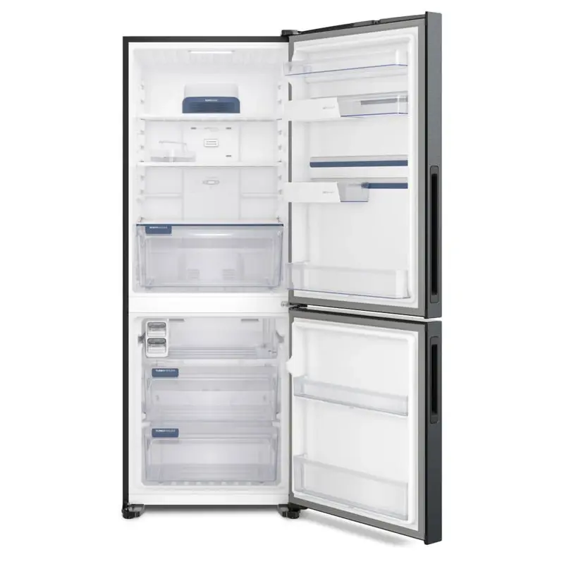 La Heladera Electrolux Bottom Freezer No Frost con AutoSense cuenta con tecnología que garantiza la frescura de los alimentos y permite conservarlos por más tiempo, reduciendo desperdicios. Con la exclusiva tecnología AutoSense, la Heladera controla la temperatura automáticamente usando Inteligencia Artificial, y prolonga la vida de los alimentos hasta un 30% más de tiempo. La Tecnología Inverter estabiliza la temperatura, garantizando las condiciones ideales para preservar los alimentos y ahorra hasta un 41% de energía. El sistema FoodControl ayuda a controlar la caducidad de los alimentos (productos lácteos, frutas, verduras, entre otros) almacenados en la heladera, reduciendo desperdicios. Heladera Electrolux No Frost también cuenta con el filtro TasteGuard, que elimina hasta 9 veces³ más rápido los malos olores causados por las bacterias El Cajón HortiNatura preserva la frescura de las frutas y verduras hasta 2 veces más tiempo, reduciendo desperdicios. Los estantes FastAdapt permiten 804 configuraciones internas para almacenar alimentos de diferentes tamaños. Con IceMax es muy fácil producir hielo, el compartimiento permite el abastecimiento de agua sin salpicaduras, evita la mezcla de olores y es fácil de retirar. La función Drink Express permite congelar las bebidas de manera más rápida. La función Compras te permite enfriar rápidamente los alimentos. La función Fiesta, mantiene la máxima capacidad de congelamiento del freezer durante 6 horas, incluso cuando tiene que ser abierto varias veces. ____________________________ ESPECIFICACIONES » Marca: Electrolux » N° de Certificado: DC-E-F8-047.7 (C1) » Certificadora: IRAM » Modelo: IB7B » N° de Certificado: DC-E-F8-047.7 (C1) » Certificadora: IRAM » Origen: Brasil » Plazo de garantía: 12 meses » Empresa: ARF