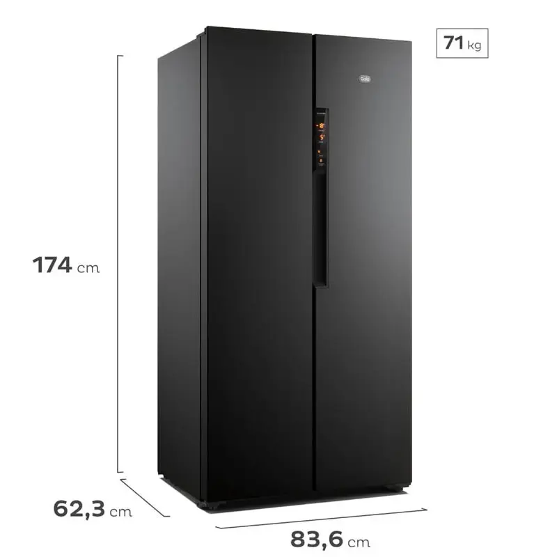 - - Tecnología Inverter: mantiene la temperatura de la heladera más estable, garantizando hasta 18% de ahorro de energía. 10 años de garantía en el compresor: confianza y calidad sostenida. Freezer Turbo: para situaciones en las que necesitás congelar tus alimentos con más rapidez. Heladera Turbo: Enfría alimentos y bebidas rápidamente en la heladera. Útil para fiestas, compras de supermercado o momentos en los que necesites enfriar tus alimentos en un menor tiempo. Panel de Control Digital: Ajuste de temperatura con un simple toque, sin necesidad de abrir las puertas y opción de bloquear funciones, evitando cambios involuntarios en las configuraciones seleccionadas. Bandejas para Huevos: con capacidad de hasta 12 unidades, para una mejor organización. Bandeja para Hielo: bebidas frías, siempre que lo desees. ____________________________ ESPECIFICACIONES » Marca: Gafa » Ancho (cm): 83.6 » Peso Embalado (en kg): 80 » Alto (cm): 174 » Peso (en kg): 71 » Profundidad (cm): 63 » Alto Embalado (en cm): 180 » Ancho Embalado (en cm): 89 » Color: Negro » Profundidad Embalado (en cm): 68 » Formato: Side by Side » Capacidad Bruta Freezer (lts): 207L » Capacidad Neta Heladera (lts): 240L » Capacidad Neta Freezer (lts): 179L » Clasificación Energética: A+ » Capacidad Bruta Heladera (lts): 244L » Compartimiento botella: Si » Compartimiento para huevos: Si » Compartimiento frutas/verduras: Si » Compartimiento Extrafrío: No » Material de estantes: Vidrio Templado » Estantes Regulables: Si » Tipo: No Frost » N° de Certificado: g » Certificadora: g » Origen: China » Consumo anual (en kwts): 315 » Apto puerta reversible: No » Apto filtro de agua: No » Tipo panel de control: Digital » Capacidad bruta total: 451L » Estantes Rebatibles: No » Cantidad de Balcones: Heladera: 3 balcones // Freezer: 3 balcones » Luz interior: Si » Ajustes inteligentes de temperatura: No » Dispenser de Agua: No » Voltaje (kW): 220 » Modelo: HGSBS457N » N° de Certificado: g » Certificadora: g » Origen: China » Garantía: Sí » Plazo de garantía: 12 meses » Empresa: ARF » IVA: 21 » III: 0 » IIN: NO