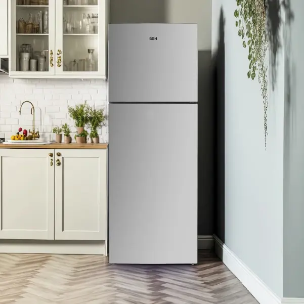 Heladera Top Mount BGH Inverter 338L BRT330I1A Tecnología eficiente y frescura duradera para tu cocina La heladera BGH BRT330I1A combina diseño moderno, capacidad ideal y tecnología Inverter para conservar tus alimentos con máxima eficiencia. Gracias a su sistema No Frost, evita la formación de escarcha, manteniendo una refrigeración homogénea sin necesidad de descongelar manualmente. Rendimiento inteligente con bajo consumo Con una clase de eficiencia energética A++, esta heladera está diseñada para un consumo eléctrico mínimo sin comprometer su desempeño. Su compresor Inverter regula el funcionamiento para mantener la temperatura constante, reducir ruidos y prolongar la vida útil del equipo. Consume apenas 234 kWh/año en uso promedio. Organización cómoda para el día a día Con una capacidad total de 338 litros, es ideal para hogares que buscan un equilibrio entre tamaño y funcionalidad: 259 L en el refrigerador, para frutas, verduras, lácteos y bebidas. 79 L en el congelador, con calificación de 4 estrellas, para conservar alimentos congelados de forma segura. Diseño compacto y elegante El diseño Top Mount (freezer superior) optimiza el espacio interior y su exterior en color Inox le aporta un toque moderno y sobrio que se adapta a cualquier cocina. Características pensadas para tu comodidad Iluminación interna LED de bajo consumo Nivel de ruido de solo 40 dB, ideal para ambientes silenciosos Autonomía de hasta 12 horas en caso de corte eléctrico Capacidad de congelamiento de 4 kg cada 24 h, para mantener todo en óptimas condiciones Dimensiones del producto Ancho: 59,5 cm Alto: 166,4 cm Profundidad: 64,4 cm Peso neto: 52,8 kg Accesorios incluidos Manual de usuario Bandejas de vidrio templado Cajón para frutas y verduras Estantes laterales para botellas y frascos Conservá tus alimentos de forma práctica, silenciosa y eficiente con la heladera BGH BRT330I1A. La tecnología y el diseño que tu cocina necesita, con la calidad y el respaldo de siempre.