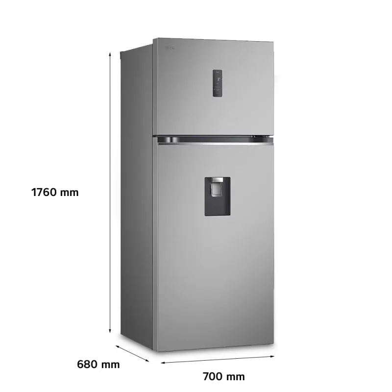 HEL LG VT40APY INV NF 383L IX LG- CAPACIDAD: NETO Total (L)383- DIMENSIONES Y PESO:Peso neto(kg) 71Peso brutokg) 77ANxALxPROF, mm 700 x 1760 x 680- CARACTERÍSTICASSistema Door Cooling+Refrigerante R600a- COMPRESORSmart Inverter Compressor (BLDC)- ThinQ (Wi-Fi)- Luz led Superior- Estante de vidrio templado- Cesta de la puerta transparente- Caja para verduras- Dispenser de agua- MODELO VT40APY- Garantía 12 meses- Origen INDONESIA