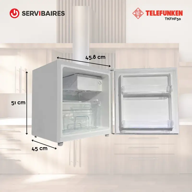 La Heladera Minibar Telefunken TFK-HF50 es la solución ideal para espacios pequeños, oficinas, habitaciones o donde necesites comodidad y practicidad en refrigeración.