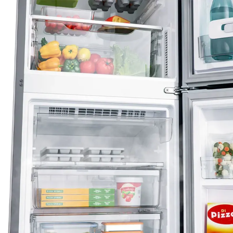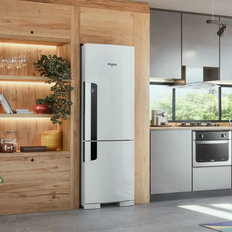 Tecnología principal / Sistema de descongelamiento No Frost / Inverter Dimensiones 184,7x62,1x71,3 cm Alto x Ancho x Profundo Dimensiones con embalaje 188,6x65,2x74,7 cm Alto x Ancho x Profundo Capacidad bruta total 428 lts Capacidad neta total 397 ltrs Capacidad bruta del refrigerador 294 ltrs Capacidad neta del refrigerador 285 ltrs Capacidad bruta del freezer 134 ltrs Capacidad neta del freezer 112 ltrs Garantía 1 año Garantía Puerta 3 años Garantía Motor 10 años Modelo WRE44BB Color BLANCO Sexto Sentido No Inverter Si Origen Brasil Voltaje 220v / 50 Hz Peso 71 Kg Peso con embalaje 73 Kg Eficiencia Energética / Clase Climática A+ / T Número de certificado DC-E-W2-378.1 Certificadora IRAM- Instituro Argentino de Normalizacion y Certificación Rango de temperatura Refrigerador (5 niveles)- Freezer (5 niveles) Puerta Reversible No Display / Panel Touch No Control de temperatura Externo: En freezer y Refrigerador Compartimento extrafrío No Hielo fácil No Fábrica de Hielo No Recipiente para hielo Si Congelamiento rápido Si, turbo freezer Dispenser de agua No Dispenser de hielo No Alarma de puerta No Traba de seguridad No Material de estantes Vidrio templado en refrigerador Cantidad de estantes en el refrigerador 4 Cantidad de estantes en el freezer 2 gavetas/cajones + compartimiento turbo freezer Crisper especial multiuso No Crisper para frutas No Paneles removibles Si Estantes removibles Si Cantidad de estantes removibles 4 Pies niveladores Si Ruedas Si Porta huevos Si Compartimiento Lácteos No Cajón de vegetales Si Compartimiento botellas No Porta latas No Rack para copas No Modo vacaciones No Modo fiestas No Modo compras No Luz interior Si Luz LED interior Si Otras Características Este modelo puede ser empotrado