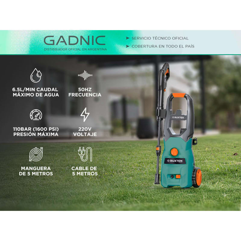 Potencia, versatilidad y eficiencia: La Hidrolavadora Eléctrica Gadnic LT316-1400A es la herramienta perfecta para quienes buscan una limpieza profunda y rápida. Con una potencia de 1600 PSI, podrás eliminar la suciedad más difícil de tus superficies exteriores y vehículos con facilidad. Diseño eficiente y duradero: Su motor de alambre de aluminio y cepillos de carbón aseguran un funcionamiento continuo, duradero y con un alto rendimiento. Además, su diseño compacto la convierte en una opción fácil de manejar y almacenar. Completamente equipada: Incluye todo lo que necesitas para empezar a limpiar desde el primer momento, con accesorios como pistola, boquilla, conectores rápidos y botella de jabón. Sin importar el uso que le des, la Gadnic LT316-1400A es tu aliada ideal para tareas de limpieza. Especificaciones Frecuencia: 50Hz Voltaje: 220V Presión Máxima: 110Bar (1600 PSI) Presión Nominal: 80Bar (1160 PSI) Caudal Máximo de Agua: 6.5L/min Caudal Nominal de Agua: 5.5L/min Motor: Motor de alambre de aluminio con cepillos de carbón Cable: 5 metros Manguera de Alta Presión: 5 metros