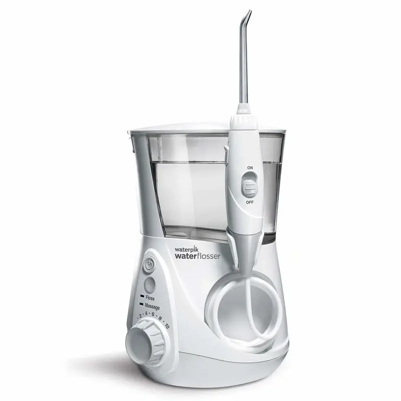 USO AVANZADO DE HILO DENTAL: Aquarius es un modelo de hilo dental de alto rendimiento que ofrece una presión mejorada con 10 ajustes para una limpieza personalizada y un modo de masaje para estimular las encías, además de un temporizador/marcapasos incorporado que hace una breve pausa de 30 segundos y 1 minuto para ayudar a controlar el tiempo de uso del hilo dental. Detalles cromados: no. Función de hilo dental. Pulsos por minuto: 1400. Detalles cromados: no. Depósito de gran volumen y mango delgado: tiene capacidad para 22 onzas durante 90 segundos de uso, no es necesario rellenarlo. El mango pequeño y maniobrable facilita el uso del hilo dental en todas las áreas, incluidos los dientes posteriores, e incluye un práctico interruptor de encendido/apagado del agua. RECOMENDADO POR UN DENTISTA: 9 de cada 10 profesionales de la odontología recomiendan la marca Waterpik. Waterpik está clínicamente probado y es la primera marca de hilo dental con agua en obtener el sello de aceptación de la Asociación Dental Estadounidense (ADA). CARACTERÍSTICAS PRINCIPALES: 7 puntas para varios miembros de la familia y para diferentes necesidades, 10 ajustes de presión (10 a 100 PSI), depósito extraíble de 22 onzas (apto para lavavajillas en la rejilla superior para facilitar la limpieza), 90 segundos de tiempo de uso del hilo dental, rotación de 360 puntas, 120 VCA/60 Hz, solo para uso en Norteamérica. FÁCIL Y EFICAZ: el hilo dental Waterpik Aquarius elimina hasta el 99,9 por ciento de la placa y es hasta un 50 por ciento más eficaz que el hilo dental para mejorar la salud de las encías. Simplemente llena el depósito con agua tibia, coloca la punta en tu boca y comienza a usar hilo dental. GARANTÍA Y SOPORTE: Respaldado por una garantía limitada del fabricante de 3 años, consulta el manual para obtener más información. El equipo de soporte de Waterpik en Colorado está disponible para ayudarlo con cualquier pregunta o necesidad sobre los productos.