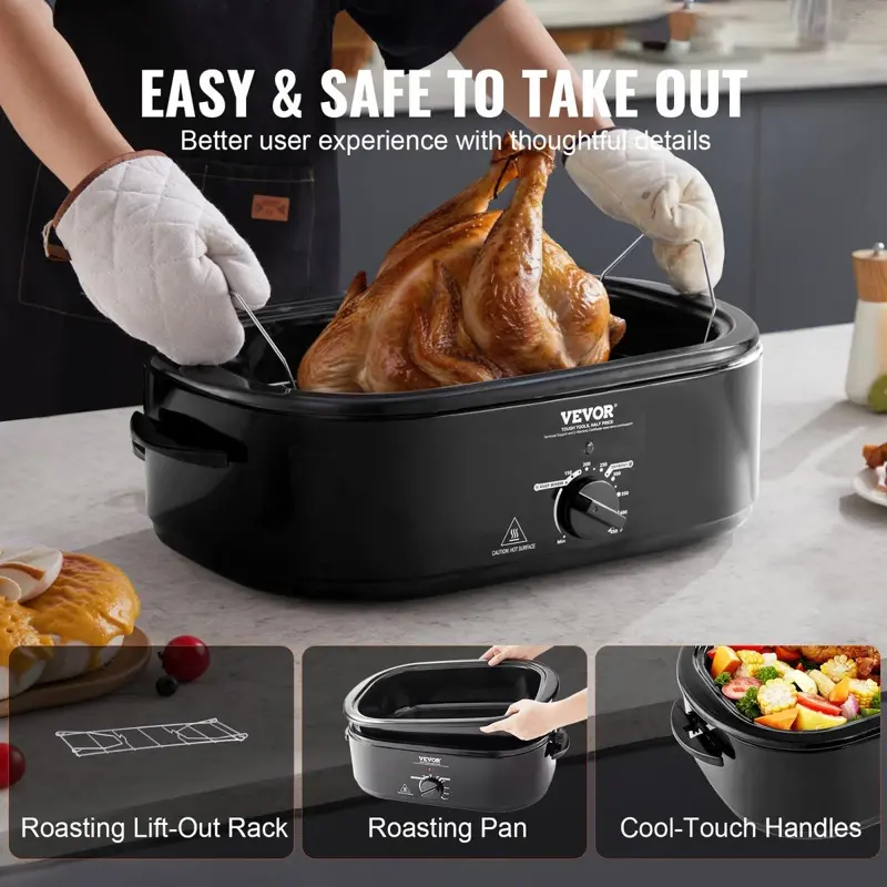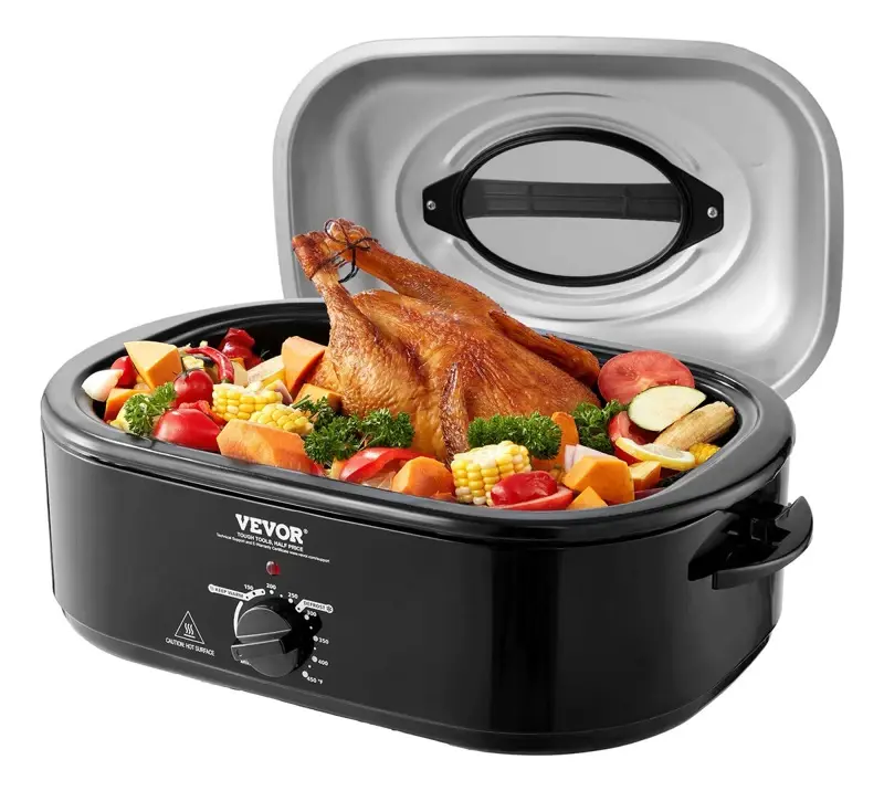 Saborea hasta 28 libras de Turquía: Buscas asar un pavo marrón, jugoso y crujiente El horno asador eléctrico VEVOR de 24 cuartos de galón es tu compañero de cocina ideal. Con su potente motor de 1450 W, su bandeja de tostado profundo y su gran capacidad, se adapta sin esfuerzo a un pavo de tamaño mediano que pesa hasta 28 libras, creando deliciosas fiestas para 1012 personas.