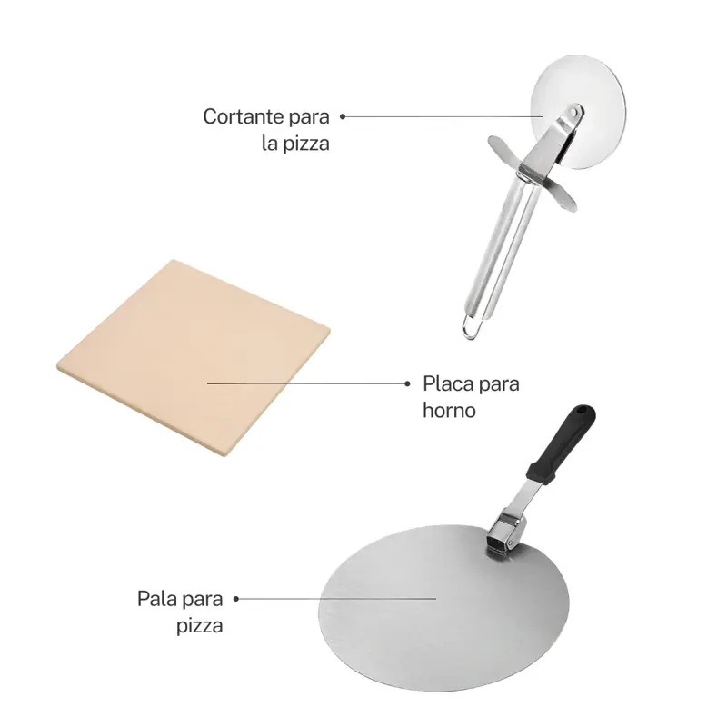 Placa para horno: Apta para pizzas de 12 pulgadas.