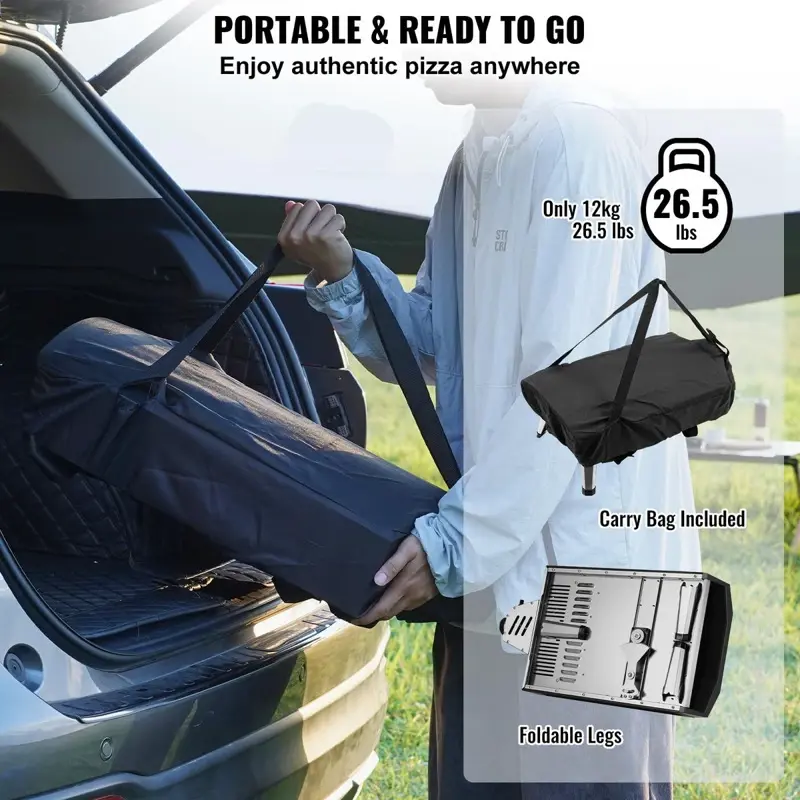 Excepcional diversión de pizza al aire libre: el horno de pizza a gas VEVOR de 13 pulgadas proporciona calor consistente y controlable y una combustión limpia para una fácil limpieza. Ideal para entusiastas de la pizza y amantes de la cocina al aire libre. Ofrece un rendimiento confiable en cualquier clima. Es perfecto para fiestas en el patio trasero y camping