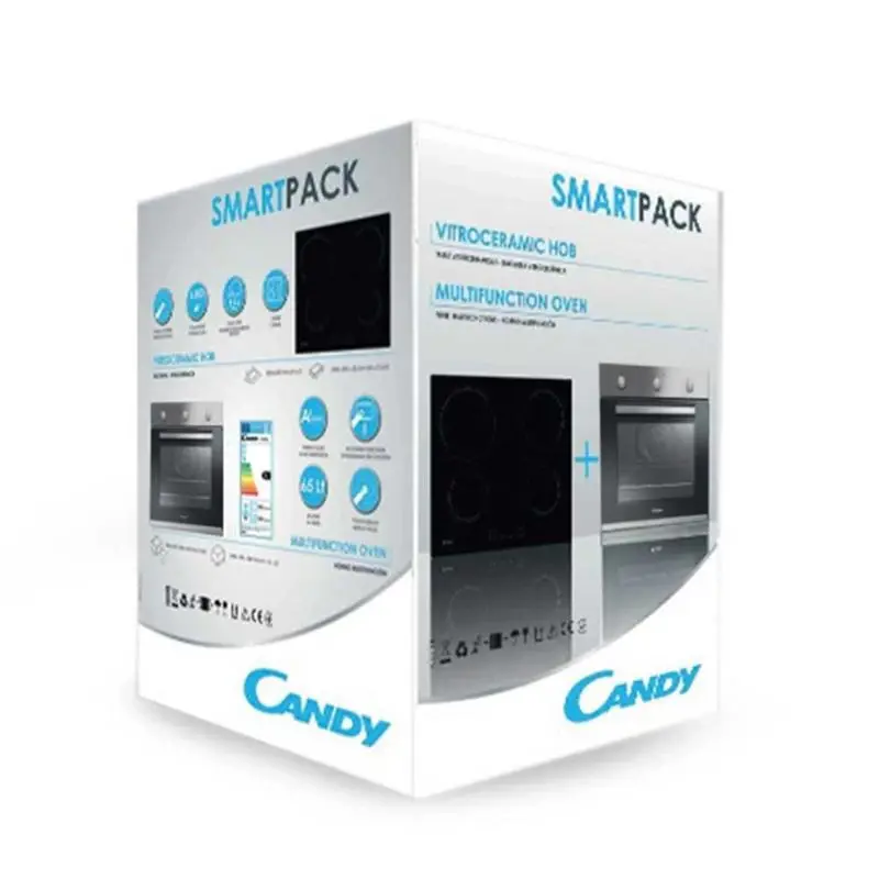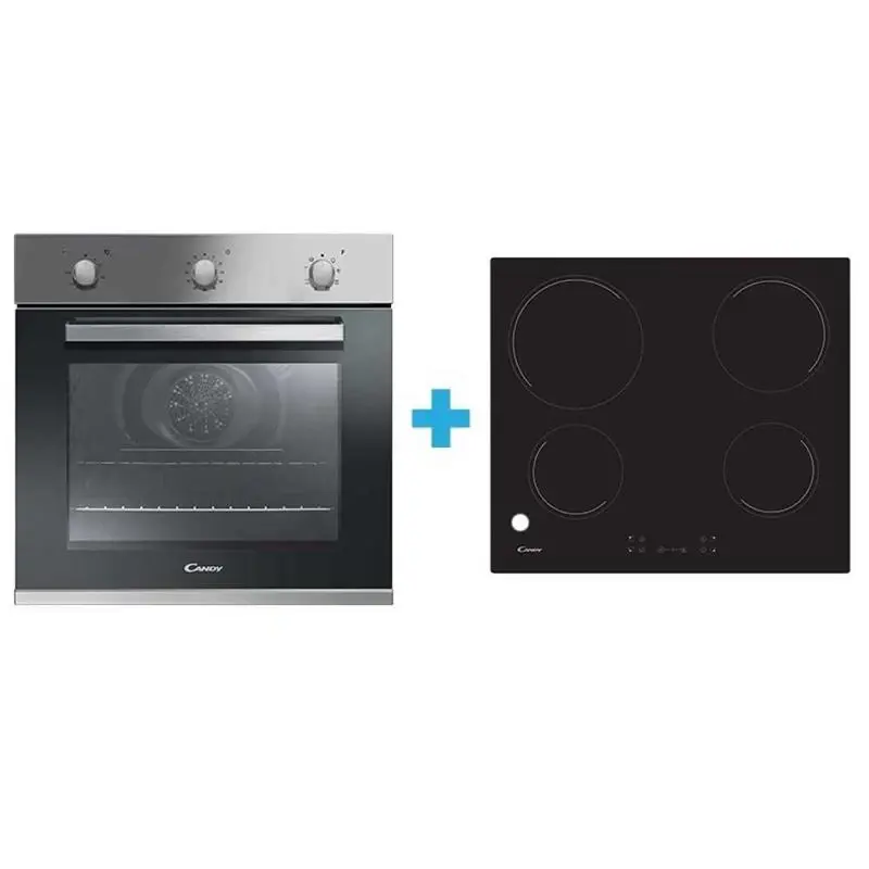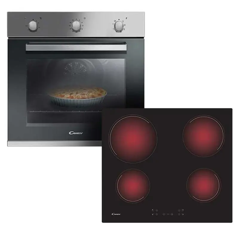 Tipo de horno Fan assistedPor convecciónVolumen útil (de cavidad) 65 LtsGuías del horno Embutidas-IntegradasBandeja 1 x 35mmRejillas 2Eficiencia energética A+Ventilación tangencial asistida: mantiene el exterior del horno a temperatura ambiente para no recalentar el mueble donde se encuentra empotrado.Medidas del horno eléctrico.Altura: 59,5 Cm.Ancho: 59,5 Cm.Profundidad: 56,7 Cm.Peso 32 kgAnafe Vitrocerámico CANDY.Modelo: CH64CCB.4 zonas de cocciónZona 1: 1200 W.Zona 2: 2300 W.Zona 3: 1800 W.Zona 4: 1200 W.Potencia máxima: 220-240 V.Control touch.Medidas: 4,6 x 59 x 52 cm.Garantia: 12 meses