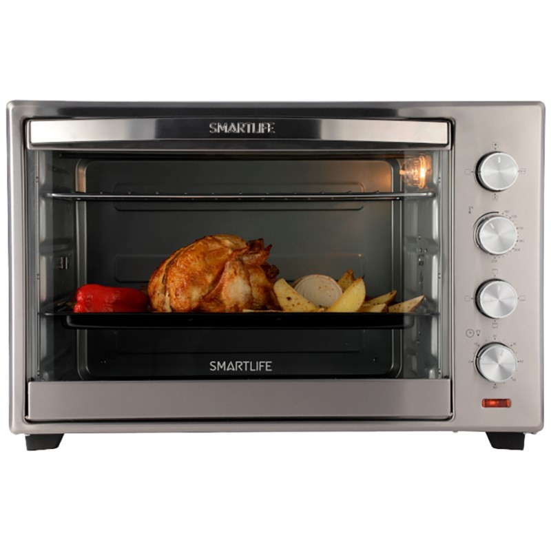 HORNO ELECTRICO SL-TOR070PN 70L SMARTLIFE- Horno El¦+ctrico de convecci¦nn- Color: Plateado- Capacidad 70lts- Spiedo- 6 opciones de cocci¦nn- Luz interior- Regulador de temperatura de 100¦° a 250¦°C- Temporizador hasta 60 minutos- Incluye: Bandeja de alimentos, Manipulador de bandeja, Bandeja junta migas, Acc para Spiedo y Manipulador Spiedo- Medidas 62x41x36cm # 11kg- Modelo SL-TO0060PN- Garant¦_a fabricante 24 meses- Origen China