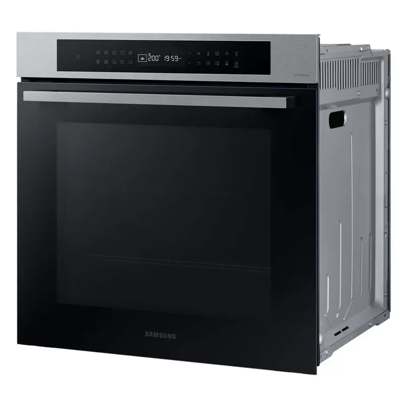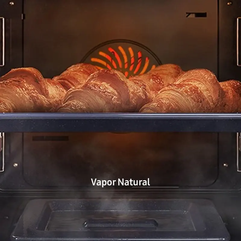 Horno Eléctrico Inteligente | Serie 4 | Vapor Natural | SmartThings | WiFi | Catalytic Cleaning | 76L | Eficiencia Energética A UNA COCINA MÁS ATRACTIVA Dale a tu cocina un aspecto elegante y único que refleje tu gusto personal y complemente el diseño interior existente. MANTIENE LOS ALIMENTOS JUGOSOS POR DENTRO Y DORADOS POR FUERA Disfrutá de alimentos deliciosamente jugosos pero crujientes. Para utilizar Vapor Natural sólo tenés que colocar la bandeja específica en la parte inferior del horno y verter agua sobre ella. Así se crea vapor mientras se cocina. Ayuda a retener la humedad natural de los alimentos, para que queden jugosos y tiernos por dentro, pero dorados y crujientes por fuera. FÁCIL AUTOLIMPIEZA Ahorrá el tiempo y el esfuerzo de fregar el horno. El sistema Limpieza Catalítica facilita la limpieza del horno. El revestimiento catalítico de la parte trasera de la cavidad absorbe la grasa de salpicaduras y goteos durante la cocción. De este modo, se limpia solo, sin esfuerzo ni costosos productos de limpieza. COCINA MUCHO MÁS Creá más platos y de mayor tamaño con un horno de 76 litros de capacidad. Te abre más posibilidades en la cocina casera. Podés preparar muchos alimentos diferentes juntos, como todo lo que necesitas para una fiesta. O podés acomodar fácilmente platos grandes, como un pollo tamaño king, para una reunión familiar. EFICIENCIA ENERGÉTICA A SIN CONCESIONES Hacé que tu hogar sea más eficiente energéticamente. Podés utilizar todo el horno y disfrutar de una excepcional eficiencia energética con clasificación A con el modo de convención Eco. Ahorrá energía utilizando menos potencia, pero seguí teniendo la comodidad de un espacio de horno muy grande y flexible. Y reducí las nocivas emisiones de CO2. ESTANTE DE DESPLAZAMIENTO SUAVE Meté y sacá las cosas del horno mucho más fácilmente. El Telescopic Rail se desliza suavemente hacia dentro y hacia fuera sin apenas esfuerzo, incluso si utilizás ollas grandes o pesadas. Crea mucha menos fricción, por lo que es mucho más fácil cargar y descargar. Y podrás hilvanar, girar y sazonar los alimentos sin derrames. MÁS ALEGRÍA, MENOS CARGA Hacé que tu experiencia en la cocina sea más divertida. Con la función SmartThings Cooking, ahorrarás tiempo y minimizarás la carga de cocción. Esta función entiende tus necesidades, te recomienda recetas personalizadas y crea un plan de comidas semanal. También te ofrece una experiencia de cocina guiada y te permite hacer las compras sin esfuerzo. Horno Eléctrico Samsung NV7000B con vapor CONVECCIÓN 1800W | GRILL 1600/1100 W | POTENCIA DE SALIDA 3200W
