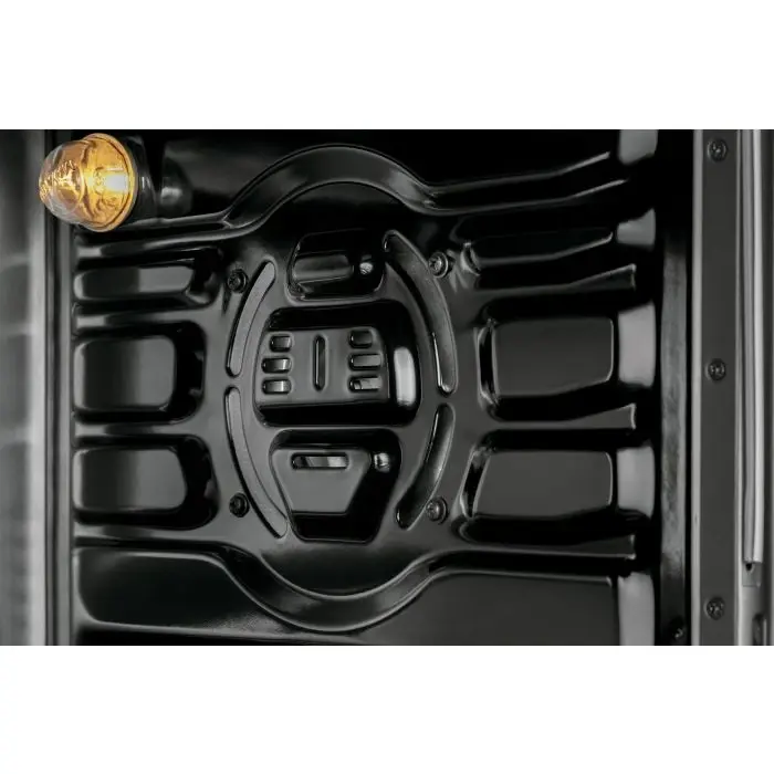 Su diseño moderno en color negro con detalles en acero inoxidable y luz interior permite controlar la cocción sin abrir la puerta, conservando la temperatura y mejorando la eficiencia.