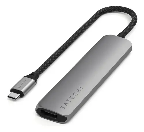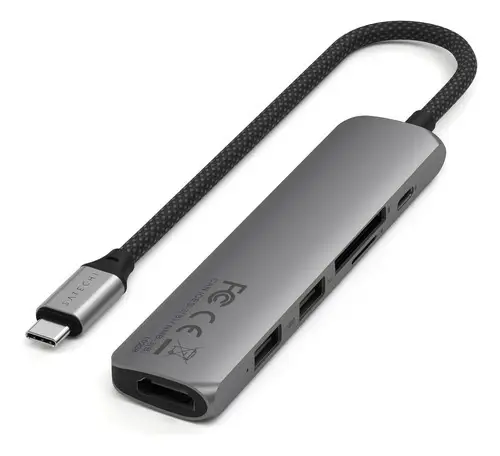 Lleve su espacio de trabajo a todas partes con el adaptador multipuerto delgado USB-C 6 en 1 de Satechi. Nuestro adaptador mejorado cuenta con HDMI 4K (60 Hz), carga USB-C PD de 100 W, un puerto USB-A 3.2 Gen 2, un puerto USB-A 2.0 y un lector de tarjetas micro/SD, combinando a la perfección seis puertos en un dispositivo compacto. Su diseño elevado cuenta con una elegante carcasa de aluminio con un cable trenzado y un cuello reforzado para una durabilidad óptima