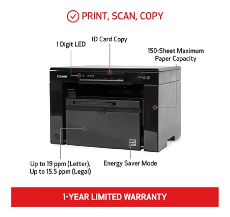 imageCLASS MF3010 VP Impresora láser multifunción monocromática con cable con escáner, copiadora, cable USB incluido, rendimiento de tóner de hasta 2.300 páginas en caja, 19 PPM, negro