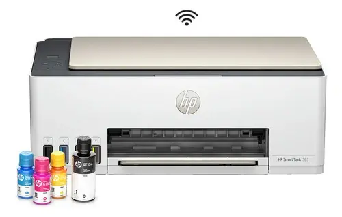 Impresora Todo-en-Uno HP Smart Tank 583; Botella de tinta original HP GT53XL, negro (135 ml); Botella de tinta original HP GT52, cian (50 ml); Botella de tinta