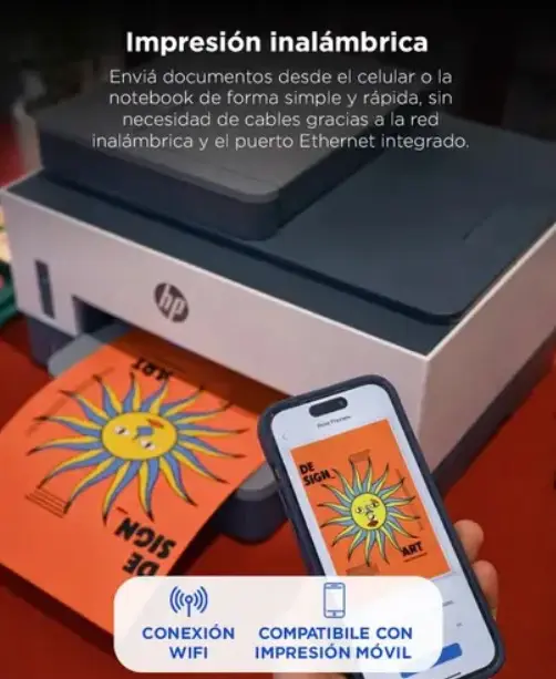 Gracias a su conexión WiFi integrada, permite imprimir fácilmente desde notebooks y dispositivos móviles. Simplifica el uso diario tanto en el hogar como en la oficina.