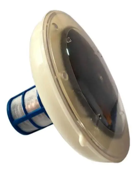 CARACTERISTICAS Y CONTENIDO: Basado en la descarga de iones de cobre. Sustituye el uso del cloro en un 90% en condiciones optimas. Recomendado para piletas de hasta 70 m3 Diámetro de plato: 26 cm Altura de plato: 5cm Peso: 0,8 kg Alimentación: panel solar mono cristalino de 2 W y 6 V Incluye: electrodo de cobre y cepillo