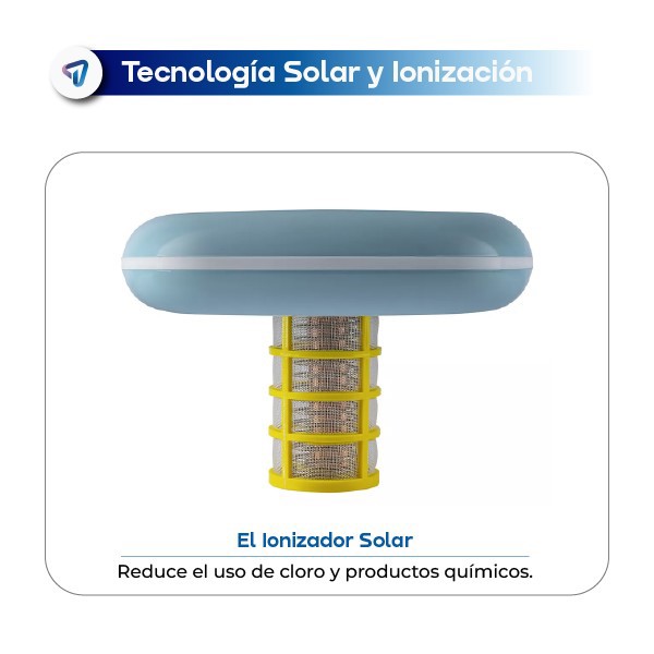 El Ionizador Solar Waggs IONI01 es una solución ecológica para el mantenimiento de piscinas, diseñada para reducir significativamente el uso de cloro mediante la tecnología de ionización. Este dispositivo cuenta con un ánodo de cobre de 10 cm, el más grande en su categoría, lo que lo hace ideal para piscinas de hasta 150 m³, eliminando algas y microorganismos de forma natural y segura. Su funcionamiento solar regula los niveles de iones de cobre en el agua, manteniéndola limpia y cristalina sin necesidad de químicos agresivos.El ionizador incluye un completo kit de mantenimiento con 30 tiras para medir iones de cobre, cepillo de limpieza, filtro/rejilla y resorte de sujeción. Para obtener los mejores resultados, es importante ajustar previamente el nivel de pH del agua a 7.5 o menos antes de utilizarlo, ya que un pH superior puede causar turbidez en pocos días. Este dispositivo es práctico, eficiente y amigable con el medio ambiente.