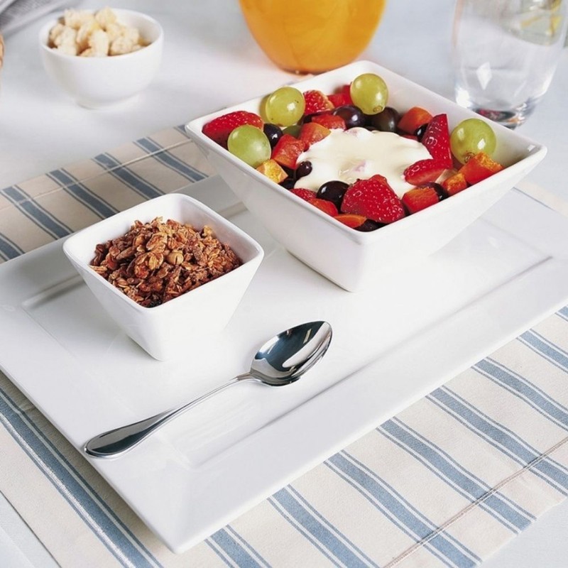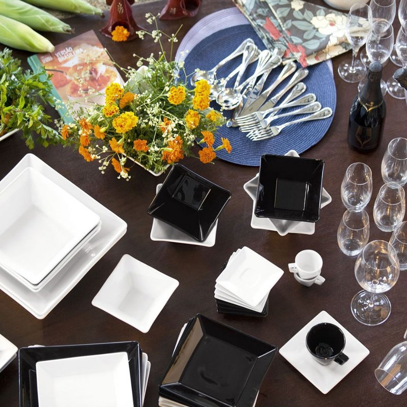 - Apto para Lavavajillas y Microondas- Material: Porcelana- Modelo: Cuadrado Blanco- Origen: Brasil- Marca: OxfordEl Set esta compuesto por:- 6u. de Platos Playos 26.5cm- 6u. de Platos Hondos 21cm- 6u. de Platos de Postre 20cm- 6u. de Tazas para Te 200cc- 6u. de Platos para Las tazas de te- 6u. de Tazas para cafe 75cc- 6u. de Platos para las tazas de CafeIrreverencia y modernidad en la mesa. Los platos y tazas cuadrados modelo Quartier White de Oxford añaden un toque atrevido y original a cualquier decoracion. El color blanco es neutro y hace que la comida se destaque de la comida que se sirve.