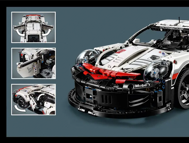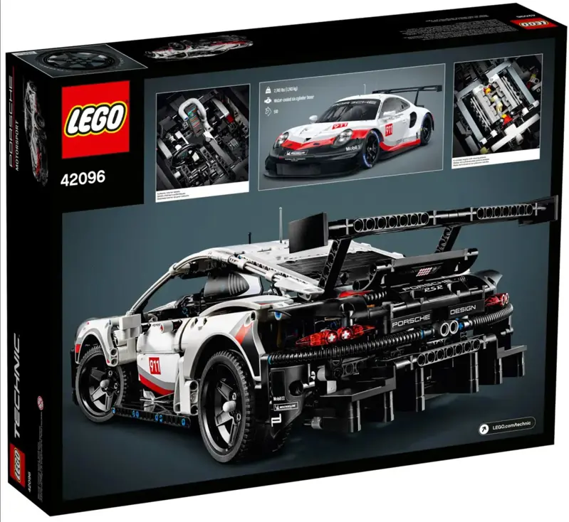 - ???42096 Porsche 911 RSR?Celebra un icono de excelencia en ingeniería con el LEGO Technic 42096 Porsche 911 RSR? . Desarrollada en colaboración con Porsche, esta auténtica réplica captura la poderosa apariencia del vehículo con sus contornos nítidos y detalles aerodinámicos.