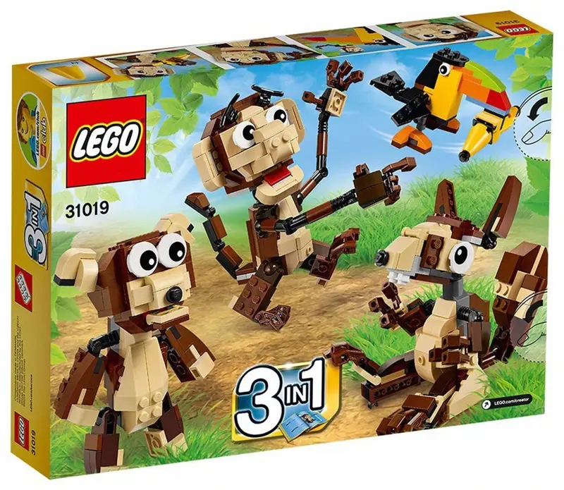 - Cuenta con una boca abierta, cejas ajustables, ojos giratorios, brazos articulables, piernas y una cola rizada. El tucán cuenta con un pico, cola móvil y alas