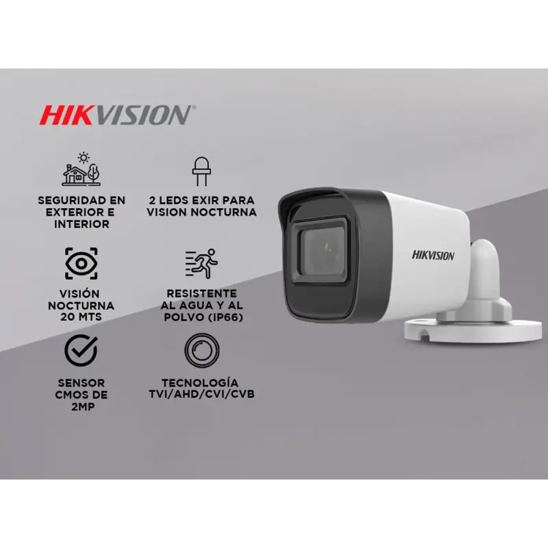 Cámara de seguridad Bullet Hikvision DS-2CE16D0T-EXIPF 2MP Interior Exterior IP67 - HIKV0003