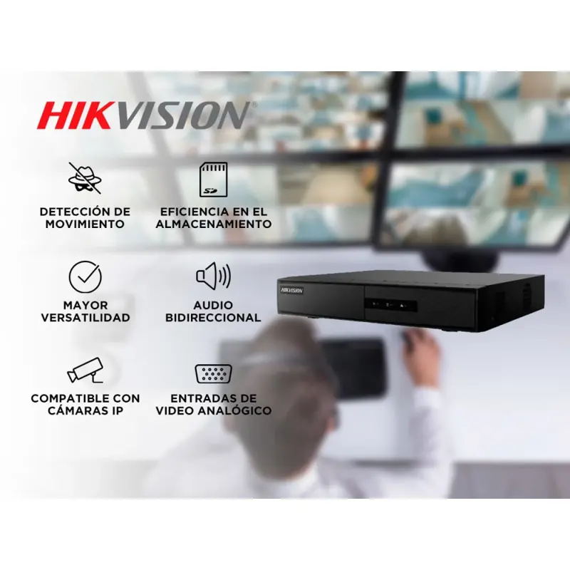 El DVR admite cámaras IP con resolución de hasta 1080p y cuenta con una entrada de video IP adicional para mayor versatilidad. Su compatibilidad con cámaras IP H.265+/H.265/H.264+/H.264 asegura la integración con diversas configuraciones.