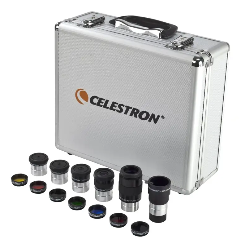 EL KIT DE OJOS Y FILTROS TODO EN UNO PERFECTO: Vea más con su telescopio. Este kit curado por expertos cuenta con los oculares y filtros de telescopio más populares de 1.25 pulgadas, además de una lente Barlow 2x. La robusta funda forrada de espuma tiene espacio para hacer crecer tu colección.