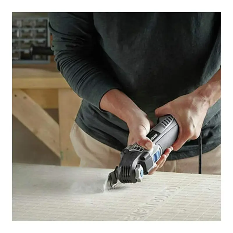 - Motor potente de 5 amperios que ofrece un rendimiento confiable para tareas exigentes de corte, lijado, desbaste y raspado.