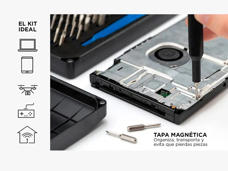 Este kit es ideal para quienes buscan un set herramientas versátil y completo, 68 piezas especialmente diseñadas para la reparación y mantención de dispositivos electrónicos