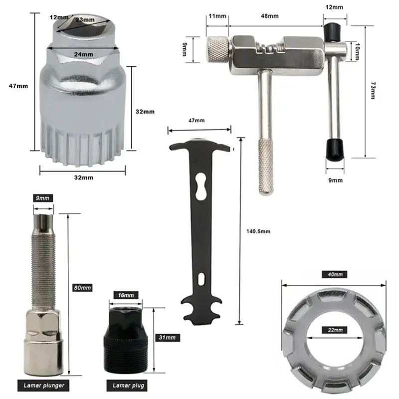 - Llave de desmontaje de cadena 3 en 1, abarca removedor de pedalier, rueda libre de casete y cubierta de pedalier. Fabricada en aleación de zinc, resistente y duradero.