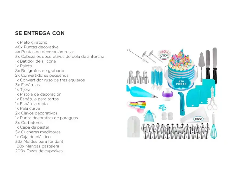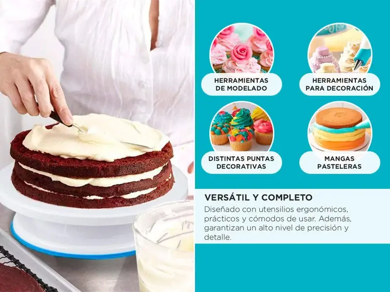 Ya seas un principiante entusiasta o un profesional experimentado, este kit de repostería te ofrece todo lo que necesitas para llevar tus creaciones al siguiente nivel.