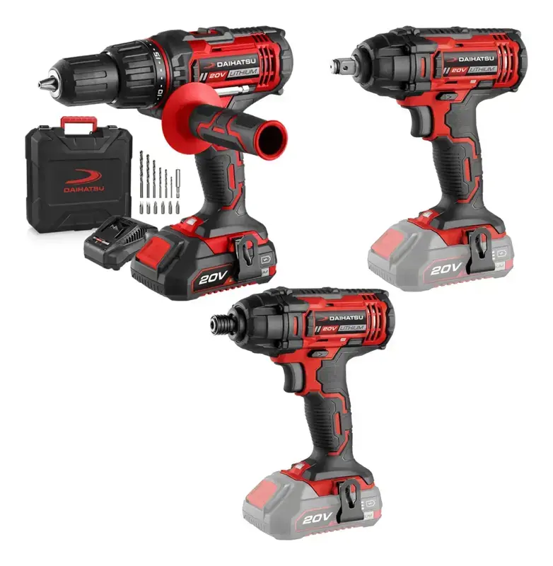 Combo 3 Herramientas Inalámbricas Daihatsu 20V – Taladro HI-TI20K + Atornillador HI-AI20 + Llave de Impacto HI-LL20