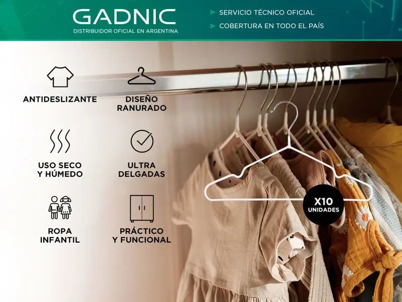 ¡Organiza el placard de los más pequeños con el Kit de 10 Perchas Antideslizantes Gadnic para niños!