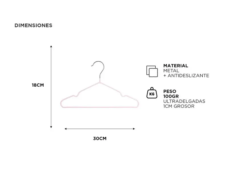 Estas perchas están diseñadas especialmente para la ropa infantil, brindando practicidad y funcionalidad a la hora de organizar la vestimenta de tus pequeños.
